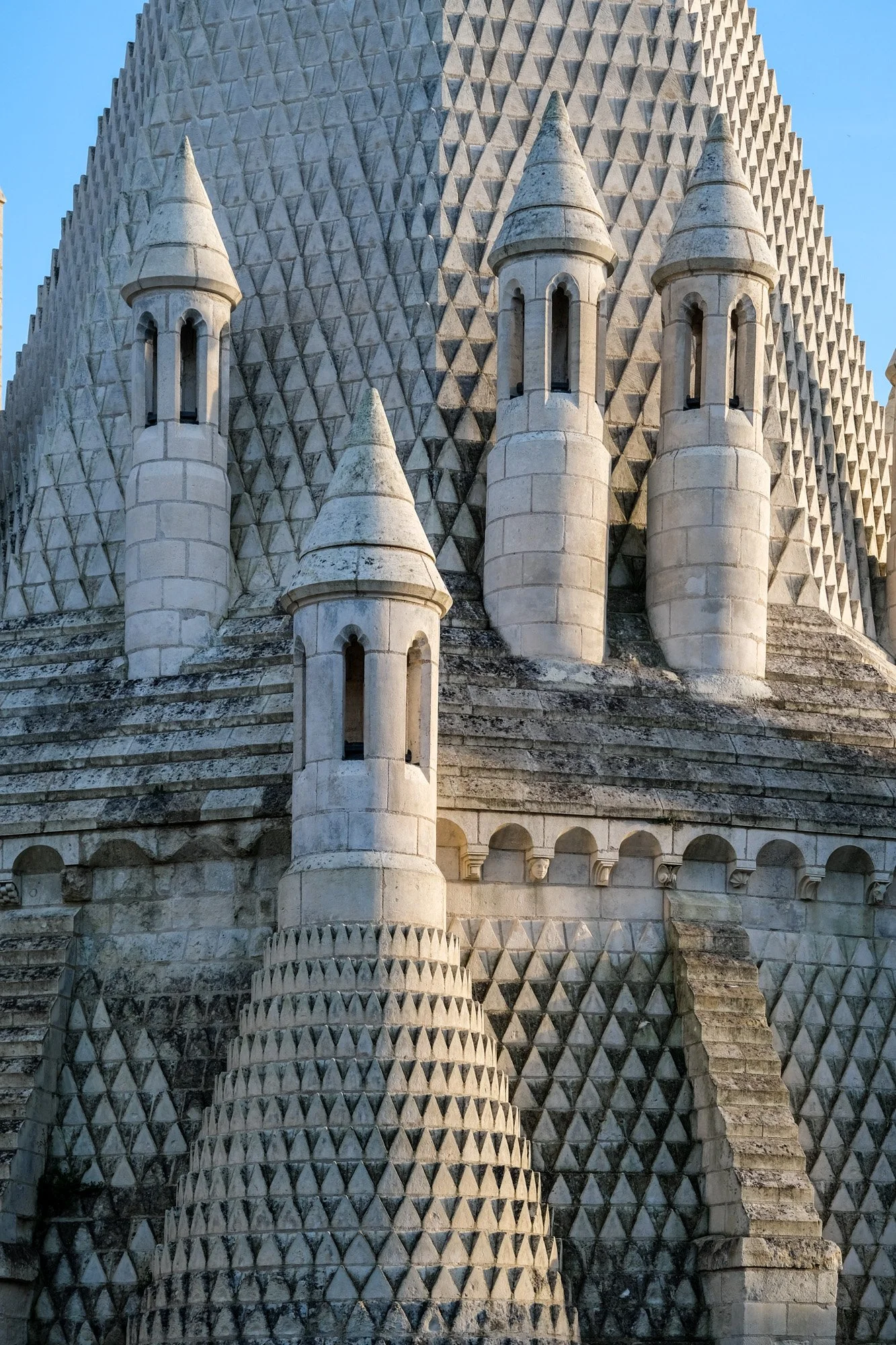 The architecture reminds me of the Fisherman's Bastion in Budapest, albeit at a much more grandiose scale. As odd as the kitchen may look on the outside, the building form makes a lot of sense from the inside. The kitchen was a massive smokehouse for salmon, which was abundant in Loire River back then. That would have explained the number of chimneys and the conical shapes. It may also explain why the architect used fish scales as an architectural motif. I could only imagine how much salmon the nuns were able to produce out of this giant smoker.