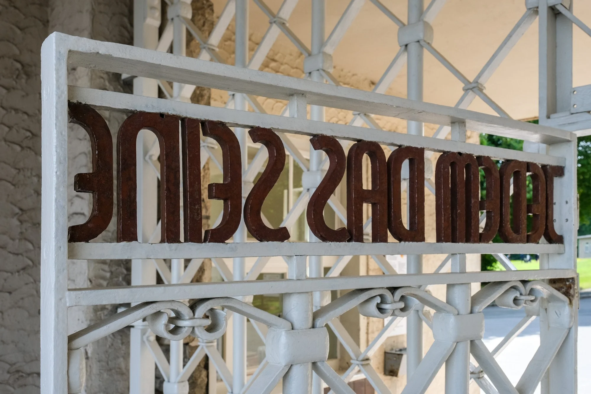 Having been to Auschwitz-Birkenau, I can’t help comparing the two camps. Buchenwald has its own version of Arbeit macht frei (Work makes you free). The phrase "Jedem das Seine" (To Each His Own) originated in Roman times as a term for justice. The Nazis co-opted the phrase to condemn those who did not conform to the ideals set out by Nationalist Socialism. The phrase is integrated into the main gate and is visible from the roll call square, where inmates would gather daily. The lettering was painted in blood red and repainted every year. Like Arbeit macht frei, this phrase seems innocent in its plain text, but carries so much historical baggage. The phrase was used in commercial advertisements in Germany from time to time, and each time it was marred by controversy.
